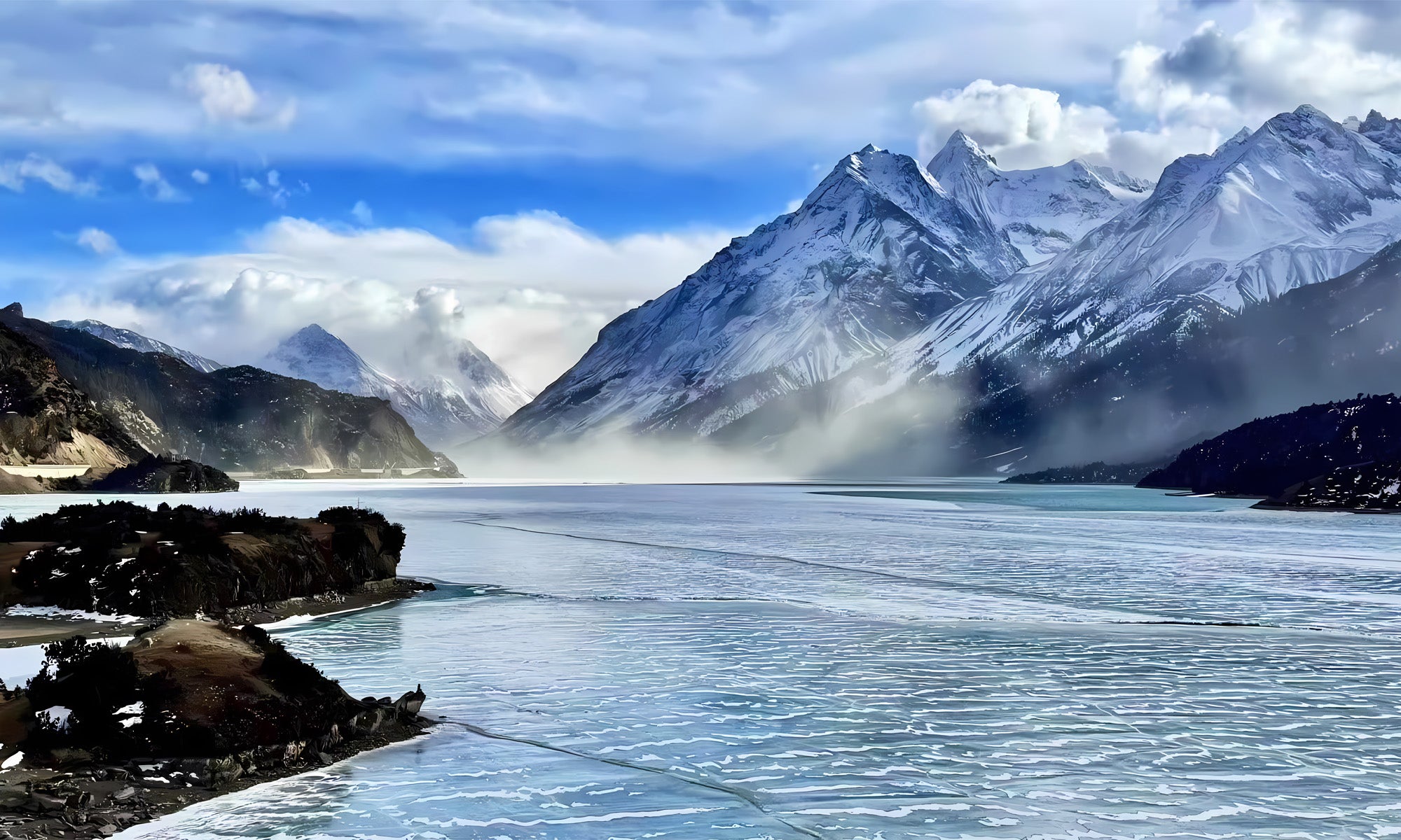 欣赏被雪山环绕的高原小瑞士--巴松措湖晨景。